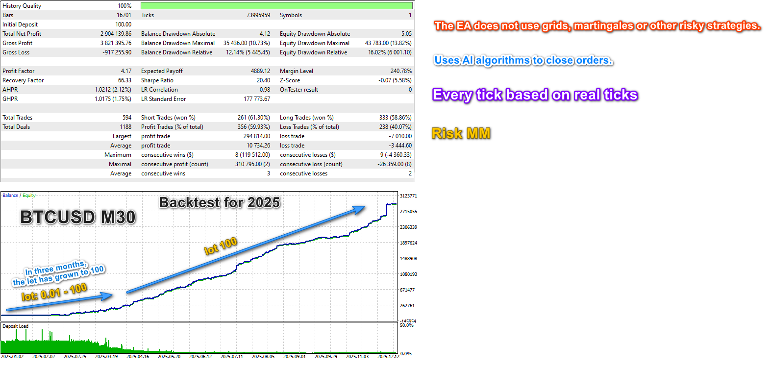 Рекомендуемые пара/таймфрейм: XAUUSD / M30, BTCUSD / M30, ETHUSD / M30